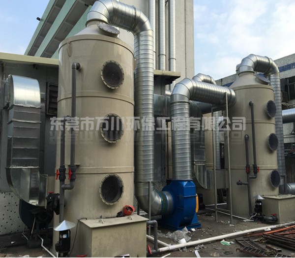噴淋塔也叫水淋塔,是以水為介質(zhì)處理粉塵。含塵氣體從塔體下方進(jìn)氣口沿切向進(jìn)入噴淋塔,在風(fēng)機(jī)的作用下,迅速充滿(mǎn)進(jìn)氣段空間,然后塔頂位置的噴淋頭向下噴水,水與含塵廢氣接觸,使得空氣和粉塵分離,達(dá)到除塵的效果。噴淋塔具有結(jié)構(gòu)簡(jiǎn)單、造價(jià)低、占地面積小、凈化效率高等優(yōu)點(diǎn),能夠處理高溫、高濕的氣流,將著火、爆炸的可能減至最低。經(jīng)治理后,污染物排放達(dá)到標(biāo)準(zhǔn):執(zhí)行《廣東省大氣污染物排放標(biāo)準(zhǔn)》(DB44/27-2001)中第二時(shí)段一級(jí)標(biāo)準(zhǔn)。
